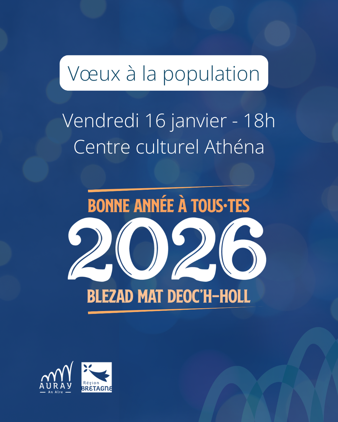 Notez également que la cérémonie des vœux à la population sera retransmise en direct sur la chaîne Youtube de la Ville d'Auray : www.youtube.com/@VilledAurayOfficiel/streams