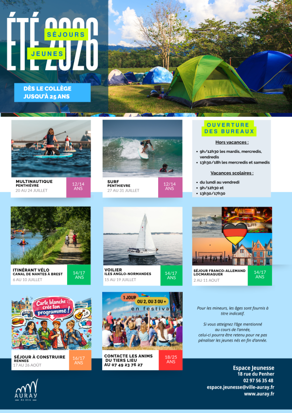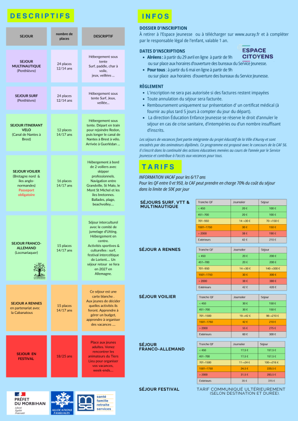 Les inscriptions sont ouvertes à partir du mardi 13 mai 2025 ! Tous les détails de l'inscription et les tarifs sont disponibles sur la brochure :