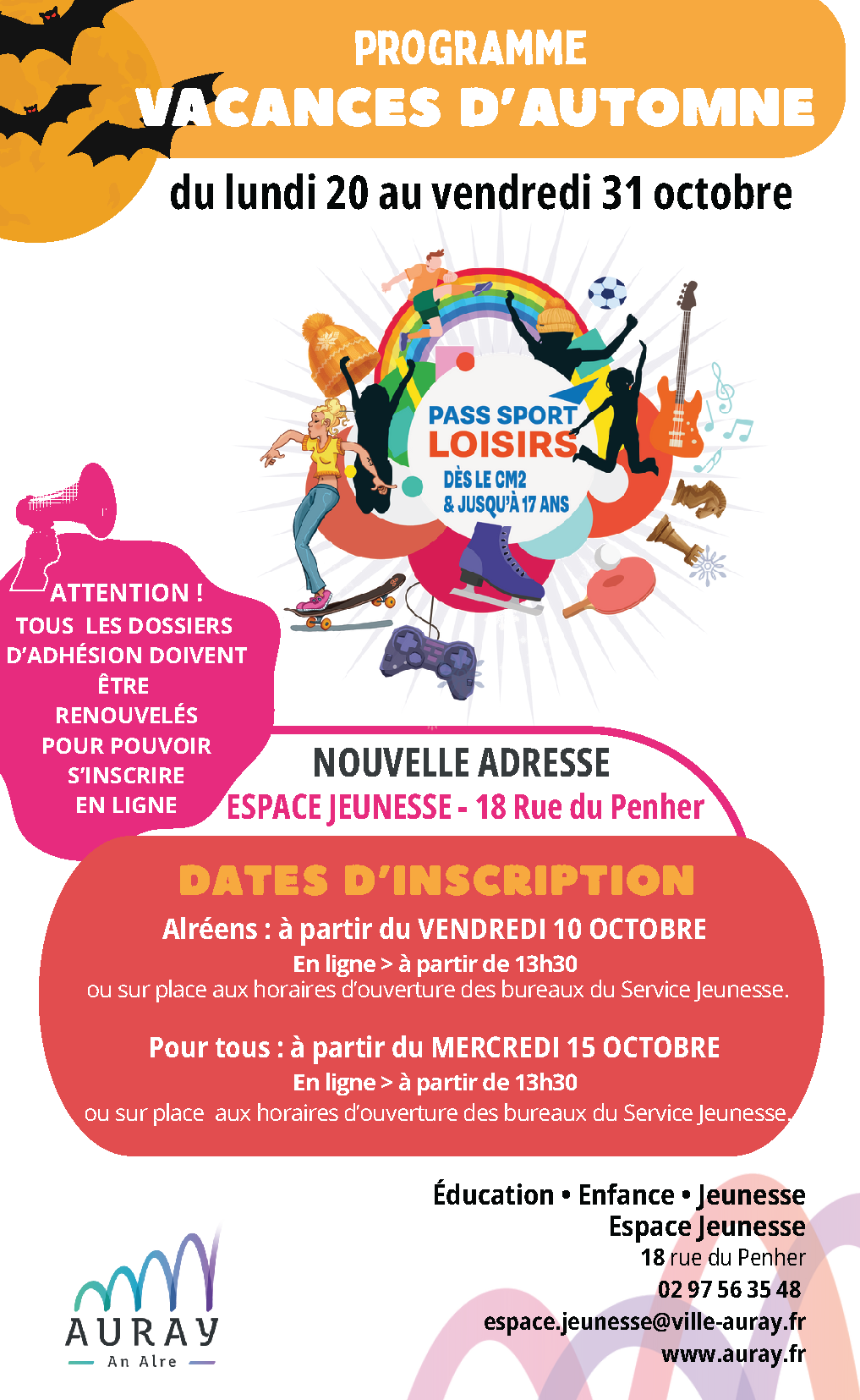 #AurayJeunesse #VacancesToussaint #EspaceJeunesse #Auray #NouvelleAdresse